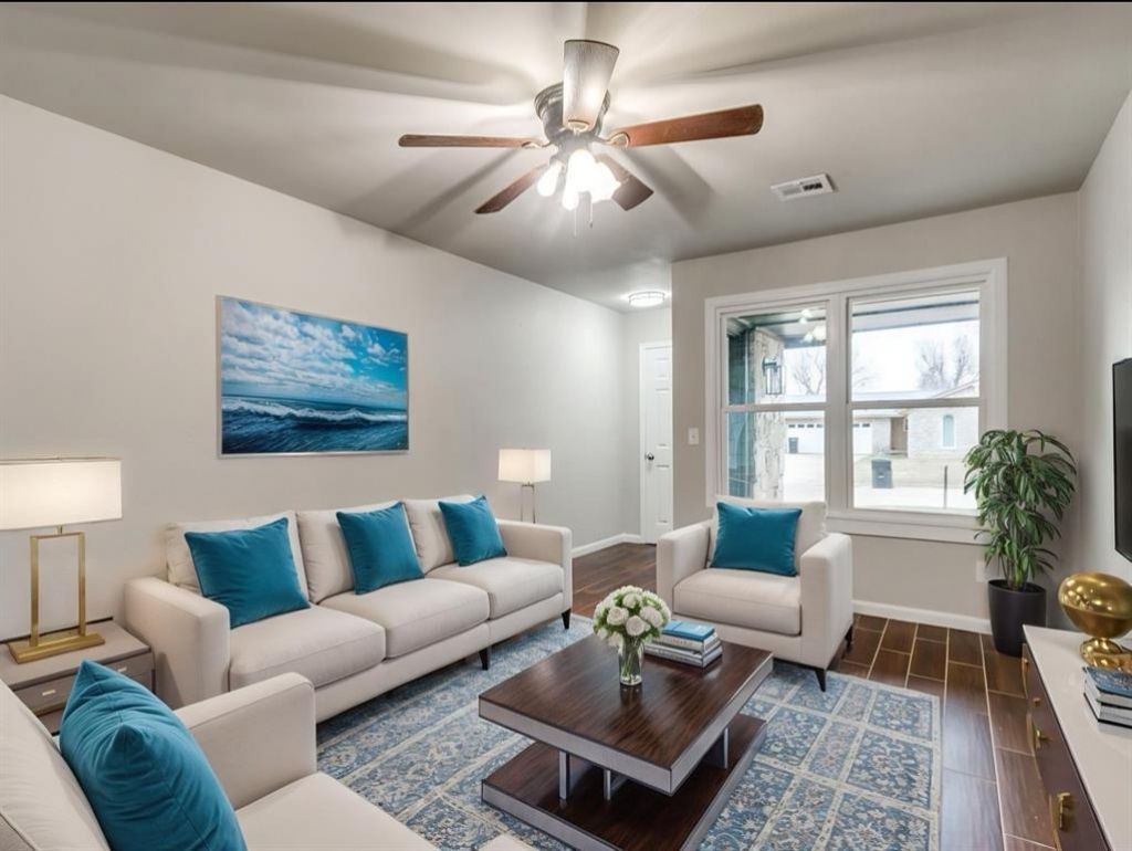 This beautiful 3-bedroom, 1.5-bath home is ready for its new owner! Recently updated with a NEW roof, as well as featuring a newly remodeled kitchen and bathrooms with stylish wood-look tile flooring throughout. The kitchen shines with new countertops, backsplash, and cabinetry, offering a fresh, modern feel.Step outside to enjoy the large backyard and spacious patio-perfect for entertaining or relaxing evenings at home. A 2-car garage adds convenience and extra storage.Enjoy quiet living while being just minutes from shopping, restaurants, and entertainment. Conveniently located with easy access to OKC and Shawnee, this home offers the perfect balance of comfort and location.